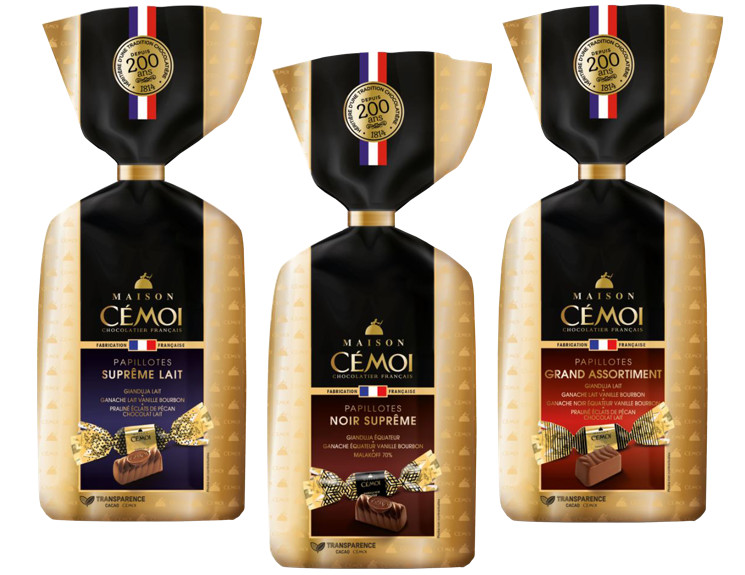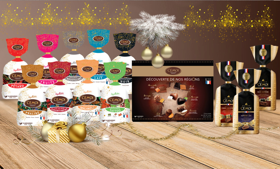 Le Groupe lance également, sous sa marque « MAISON CÉMOI » cette fois, son adaptation haut de gamme des célèbres papillotes d’origine lyonnaise. Il propose trois assortiments composés d’une sélection exclusive de recettes raffinées.