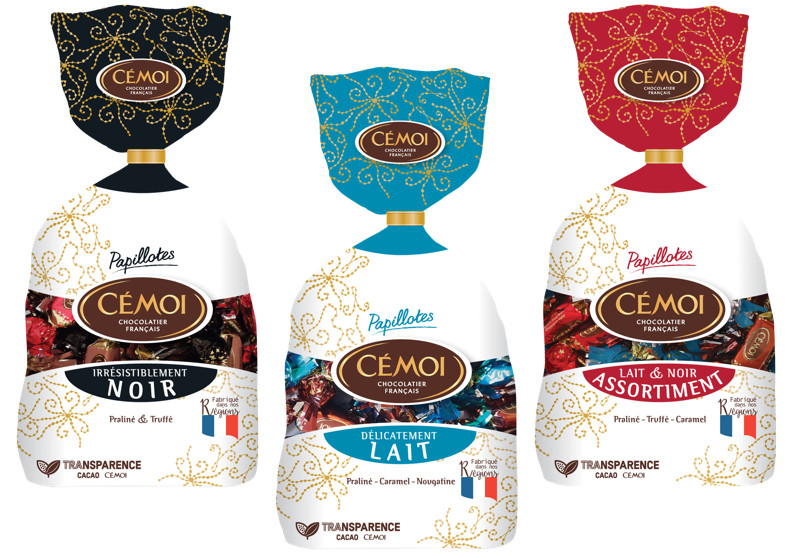 Maison CÉMOI offre aux gourmets son interprétation raffinée des papillotes. Ces savoureux bonbons de chocolat, présentés dans des sachets élégants, ont été imaginés pour les connaisseurs. Leurs recettes sont élaborées à partir d’ingrédients soigneusement sélectionnés et d’un cacao aux grandes qualités aromatiques, issu de la démarche durable de CÉMOI, « Transparence Cacao ».