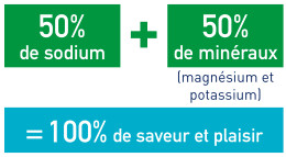 Il se présente comme une véritable alternative au sel classique pour les consommateurs soucieux de leur bien-être sans renoncer au plaisir du goût. Avec 50% de sodium en moins et 100% de saveur, le goût du sel est intact !