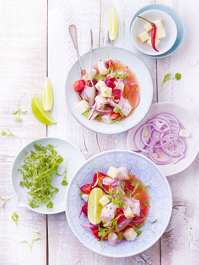Égayez votre quotidien, avec des recettes lumineuses et savoureuses. Quoi de mieux que les fraises pour sublimer les produits laitiers ? Avec son petit goût sucré, la fraise se glisse facilement dans une salade, un ceviche et bien sûr en verrines…