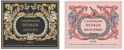 Le lancement de « Augusta » est l’opportunité pour Champagne Devaux de compléter l'offre proposée à Monoprix. Ainsi, cette nouvelle cuvée rejoint « Œil-de-Perdrix », la référence champagne rosé déjà présente en magasin et distribuée avec succès depuis 2012. Finesse et complémentarité sont les maîtres-mots de ces deux champagnes. La Maison Devaux a fait le choix de reprendre les dessins de l’étiquette « Œil-de-Perdrix » datant du milieu du XIXe siècle et de les adapter à la couleur dorée de l’habillage de la nouvelle cuvée.