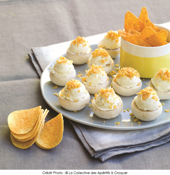 Champignons farcis au fromage frais et tortillas façon crumble