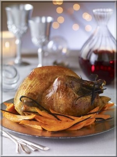 Chapon de Pintade Fermier Rôti à la Vanille et ses Patates Douces Glacées
