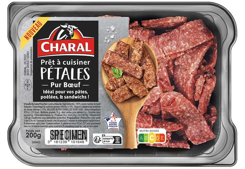 Plus larges que les allumettes, ces pétales sont parfaits pour créer la surprise à table ! Pratiques et savoureux, ils apportent une touche d’originalité dans les plats : pâtes, poêlées, mais aussi sandwichs. Leur atout ? Une cuisson ultrarapide – 1 minute 30 à la poêle – mais aussi un moelleux irrésistible, grâce à une viande hachée 100% pur bœuf de qualité CHARAL.