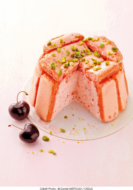 Concasser les pistaches sur la charlotte démoulée, servir frais.
