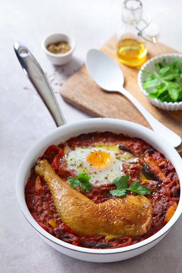 Chatchouka à l’œuf de poule Bio Label Rouge et cuisses de Poulet Fermier Label Rouge