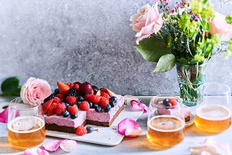 Cheese-cake chocolat & fruits rouges, accompagné d’un cidre généreux et structuré