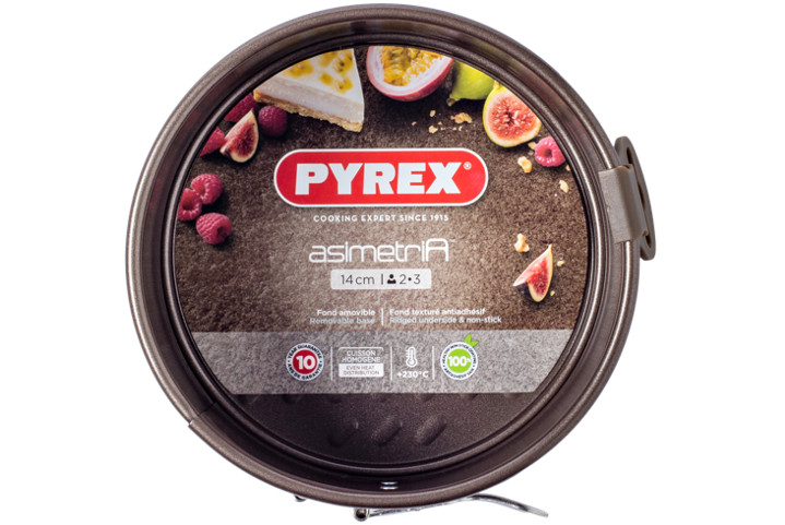 La gamme asimetriA propose une nouvelle forme avec le moule à charnière de 14cm ! Celui-ci vient compléter la gamme déjà existante de 30 références. Avec asimetriA, Pyrex® a développé une gamme innovante de plats à four et de moules à pâtisserie. Le revêtement anti-adhésif utilisé garantit une cuisson homogène et une résistance impeccable. La poignée extra-large et très ergonomique des plats assure une prise en main optimale pour la sortie du four tandis que les deux poignées de supports permettent un transport en toute simplicité. Le design moderne et la couleur gourmande Macadamia sont parfaits pour servir à table.