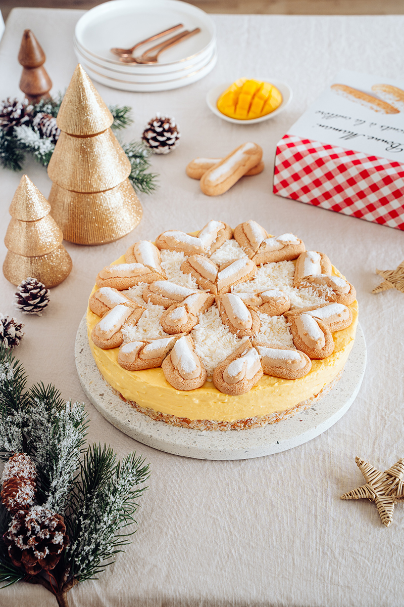 Cheesecake aux biscuits à la cuillère Bonne Maman®, mangue et coco