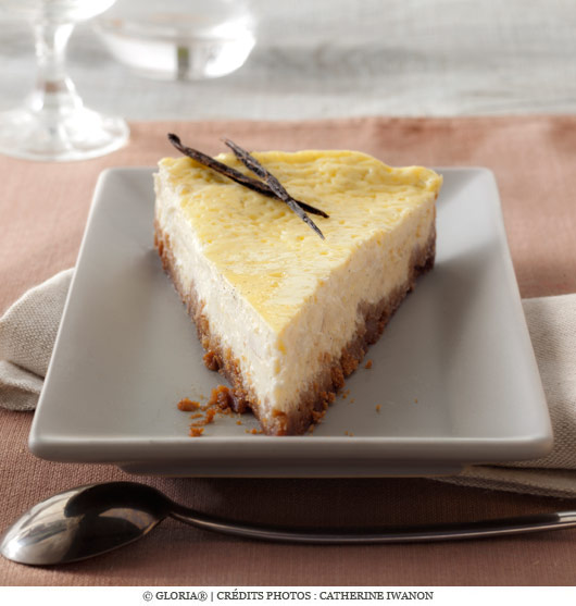 5• Battez le fromage frais jusqu'à ce qu'il soit lisse. Ajoutez les graines de gousses de vanille puis les œufs un par un, le sucre et le lait Gloria.