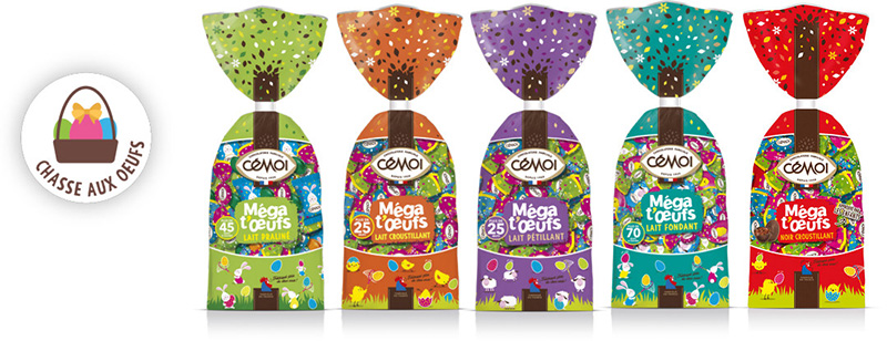 De plus, pour la première fois, Petit Hérisson se décline dans un sachet spécial Pâques à picorer. Et, pour le plus grand plaisir de tous les amateurs de chocolat, CÉMOI complète sa traditionnelle gamme Vichy avec deux nouveaux sachets d’œufs à partager : au chocolat au lait croustillant et au chocolat au lait praliné. Fabriquées en France, ces nouveautés printanières bénéficient toutes du savoir-faire et de la qualité des produits CÉMOI.