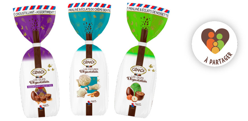 • Les œufs dégustation : des recettes subtiles pour une version adulte de la chasse aux cœurs ! En 2022, CÉMOI revisite les habillages de cette gamme pour davantage de sobriété et une mise en avant renforcée de son savoir-faire français.