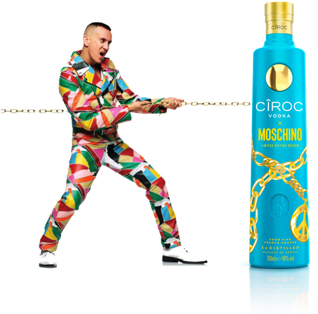 Moschino habille la bouteille CÎROC d’une parure audacieuse signée de son talentueux directeur artistique Jeremy Scott.