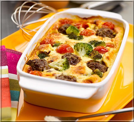 Clafoutis au Bœuf – Tomates Cerises et Brocolis