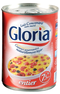 Fabriqué en Normandie à partir de bon lait frais, le lait gloria, le lait Gloria est aujourd'hui la référence en matière de lait concentré non sucré. Obtenu par simple évaporation de l'eau présente dans le lait, le lait Gloria et sans conservateur ni arôme artificiel. Il est le symbole d'une cuisine simple, légère et gourmande.