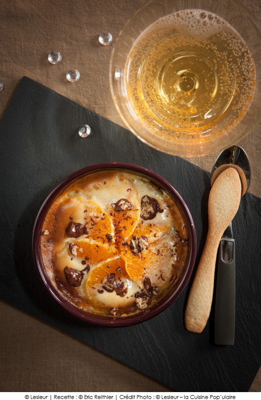 ④• Dans une poêle chaude versez 1 cuillère à soupe de LESIEUR DUO Huile & Beurre, le sucre semoule et cuisez jusqu’à l’obtention d’un caramel blond. Ajoutez le miel liquide et enrobez les tranches de clémentines 1 minute sur chaque face. Déposez-les dans 4 petits plats à four. Versez le restant de caramel au miel dans un bol et ajoutez les 2 jaunes d’œufs. Fouettez l’ensemble jusqu’à ce que le mélange soit blanc et mousseux. Nappez les clémentines de sabayon, placez sous le grill une petite minute. Surveillez attentivement la coloration.