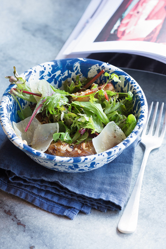 Servez avec le mesclun de salade et quelques copeaux d’Ossau-Iraty.