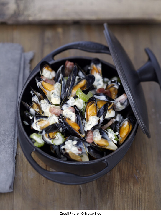 Cocotte de moules au céleri et au Bresse Bleu