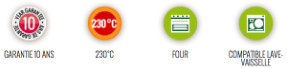 La prise en main optimale, grâce à la poignée extra-large et la petite poignée de support, facilite l’étape délicate de la sortie du four et assure un transport en toute simplicité !