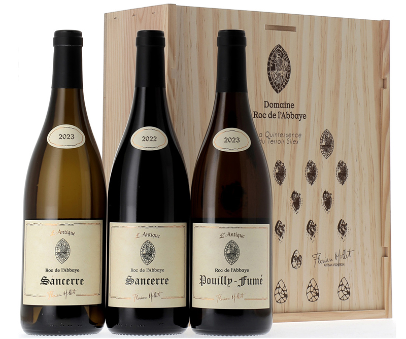 Florian Mollet a concocté pour les fêtes de fin d’année un coffret de 3 bouteilles des cuvées Antique, avec un Sancerre blanc 2023, un Pouilly-Fumé 2023 et un Sancerre rouge 2022.