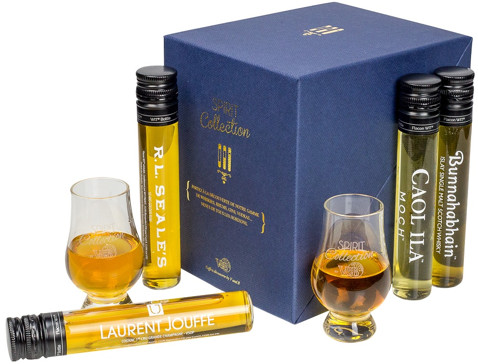 Plus d’hésitation, il suffit de choisir 4 flacons au format WIT® (Wine In Tube), parmi 40 références de whisky, rhum, gin et cognac des plus grandes maisons de spiritueux. Pour une expérience plus intense, V and B a glissé dans ce coffret, deux verres à dégustation spécialement étudiés pour laisser les arômes s’exprimer à la base du verre et remonter jusqu’au nez afin de profiter de toute la puissance aromatique de ces liqueurs.