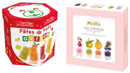 Pour les gourmets, Motta complète sa collection avec un très beau coffret de pâtes de fruits : « Les Créatives ». Inspirées des nouvelles tendances pâtissières, ces recettes inédites nous plongent dans un univers de gourmandise et d'audace : Poire/Verveine, Mandarine/Cardamone, Framboise/Rose/Litchi, Myrtille/Badiane.