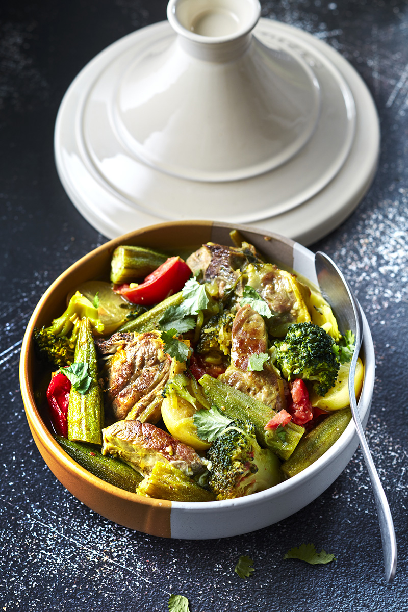 Collier d’agneau Bio en tajine au citron confit, gombos et brocoli