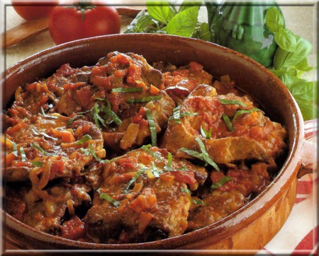 Retirer le bouquet garni et présenter dans un plat chaud, avec les feuilles de basilic ciselées. Servir avec des pâtes au parmesan.