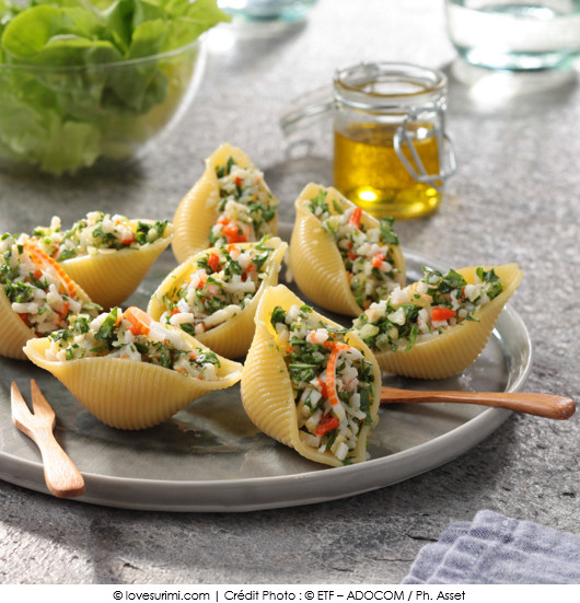 – Le surimi est peu calorique, ce qui permet d’en consommer en de multiples occasions dans la journée, sans crainte de dépasser la note calorique. Par exemple,
