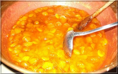 6.Laissez bouillir à petit feu pendant 20 minutes en remuant constamment pour que les mirabelles n'attachent pas au fond de la bassine