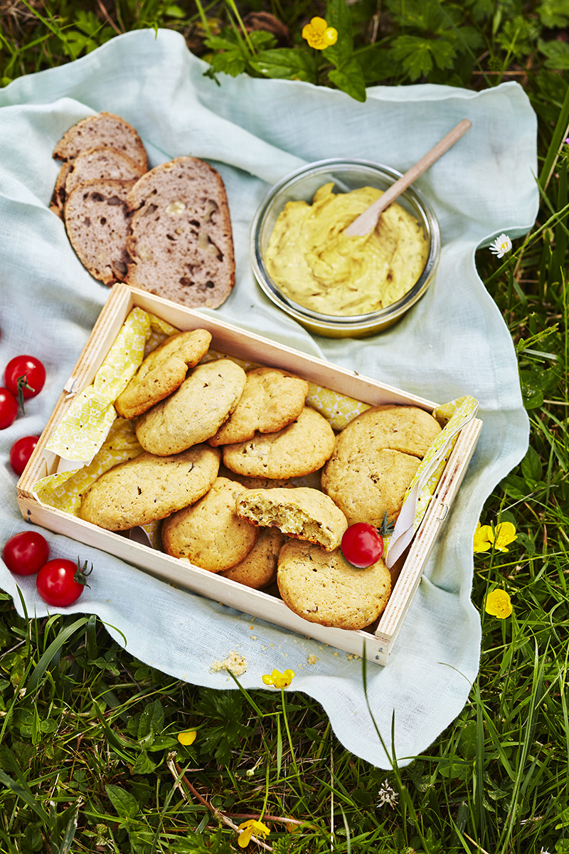 Cookies à l’Abondance, olives et pesto roquette basilic