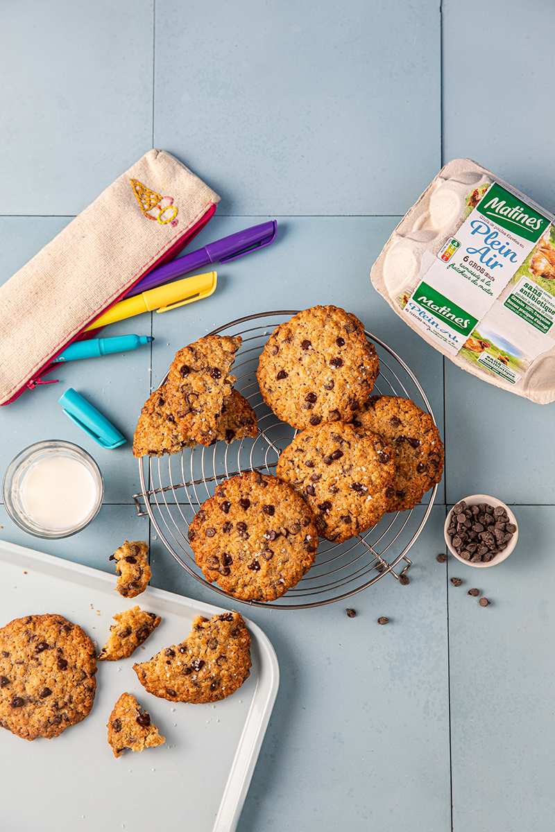 Et comme on veut toujours le meilleur pour nos enfants, on choisit les œufs de Plein air Matines. Disponibles en boîte de 6, cette référence responsable sera parfaite pour préparer les Cookies aux Flocons d’Avoine et Pépites de Chocolat.