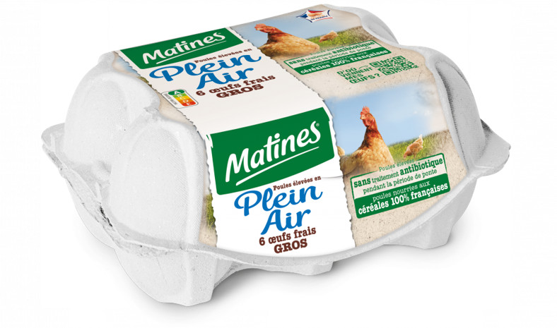 Depuis 35 ans, Matines s’engage avec plus de 250 éleveurs partenaires pour proposer des œufs frais de qualité. Les poules sont élevées au cœur des régions françaises, proches des centres de conditionnement, dans le respect des bonnes pratiques d’élevage. Elles ont une alimentation végétale, riche en vitamines et minéraux. Notre filière permet de maintenir l’emploi dans les campagnes et de garantir à nos éleveurs une juste rémunération. Grâce à notre blockchain, il est possible de retrouver le parcours de nos œufs de l’élevage jusqu’au magasin en scannant le code se situant dans la boite. Enfin grâce à notre gamme complète, Matines propose des œufs pour tous les consommateurs : des œufs Biologiques, aux œufs Frais, en passant par le plein air, le Label Rouge Fermier et le Sol.