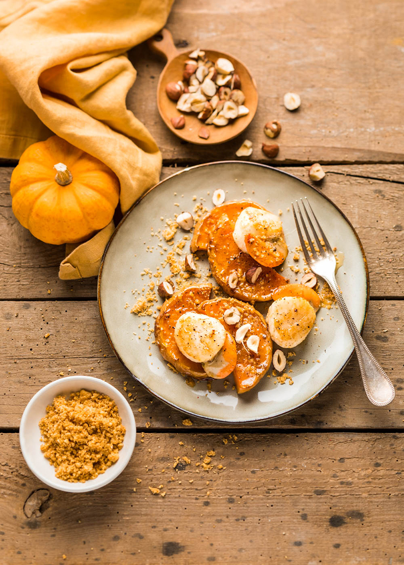 Coquilles Saint-Jacques au butternut rôti et au crumble de noisettes