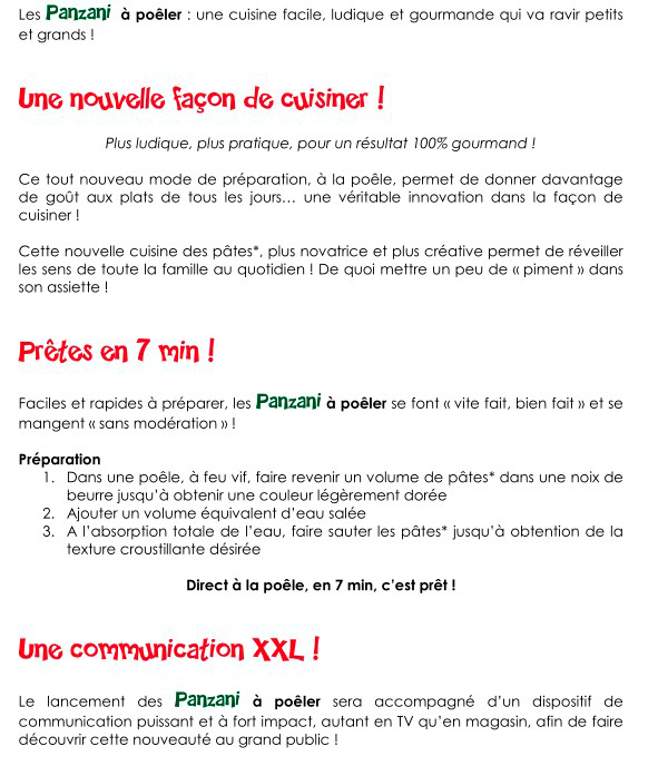 Leader sur tous les marchés en France, Panzani se développe et innove constamment afin de conserver la place de choix qu’il occupe dans le coeur des Français. Une réussite: Panzani est aujourd’hui l’une des 5 marques préférées des Français.
