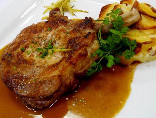 6- Verser la sauce sur les côtes de porc en attente au chaud. Parsemer de persil haché et servez immédiatement.