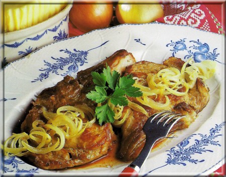 4.Ajouter dans la poêle la fondue d'oignons, retourner les côtes et poursuivre la cuisson 5 min. Saler et poivrer.