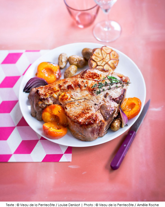 Côtes de veau aux abricots et oignons rouges