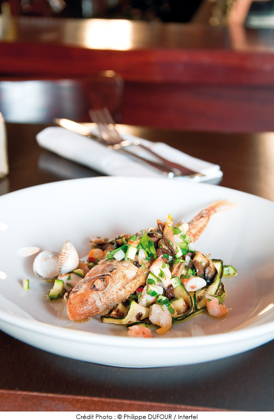 Revenir à Marseille était pour moi une évidence, ouvrir un restaurant pour tenter de décrocher une étoile ne l’était pas. Mais je ne renie pas pour autant tout ce que j’ai vécu dans ce monde de la haute gastronomie. Aujourd’hui, je me sens libéré, détendu et heureux de proposer une cuisine plus canaille même si ma carte se divise en deux. D’un côté, les plats classiques de brasserie avec la salade niçoise, l’artichaut barigoule, le foie de veau, l’entrecôte sauce béarnaise ou le baba au rhum. De l’autre, des plats « signature », plus proches de ce qu’était ma cuisine auparavant comme le loup retour du Maroc ou le paleron retour du Maghreb.