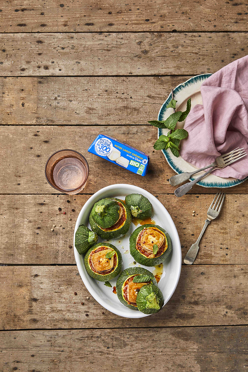 Courgettes farcies au petit épeautre et Lingot crémeux Les 300&Bio