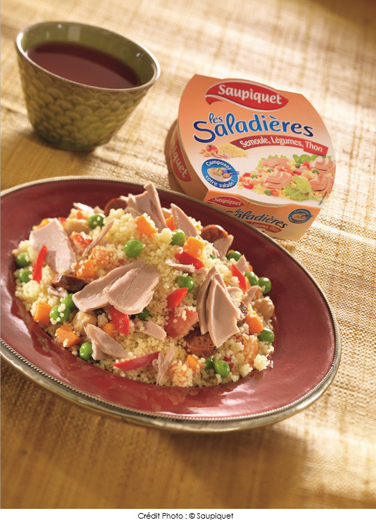 Toujours leader sur ce marché, grâce aux Saladières, Saupiquet conçoit de véritables repas à base de thon, pour les déjeuners sur le pouce à la maison ou au bureau.