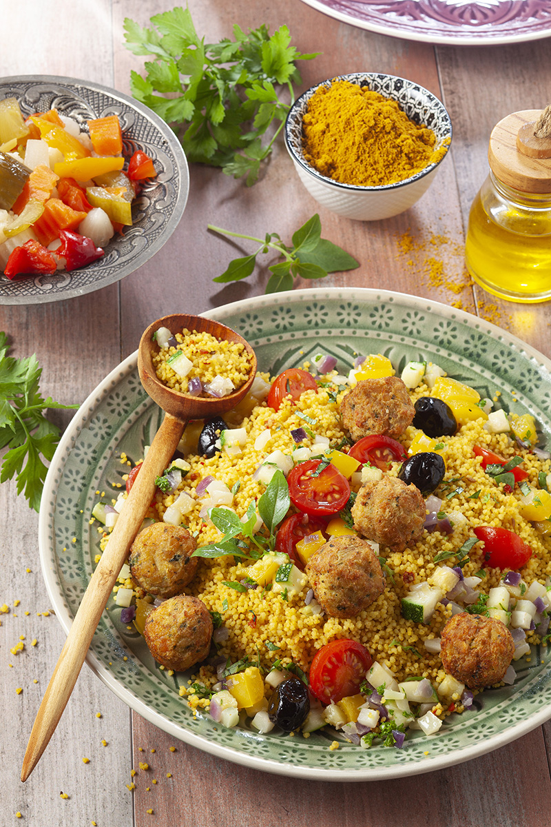 Couscous parfumé aux Épices du Monde aux légumes d’été & falafels