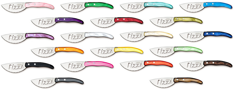 Marre de découper la pizza avec une paire de ciseaux ? La coutellerie Dozorme a conçu un couteau à pizza laguiole de forme incurvée qui facilite le découpage de toutes les pizzas sans déchirer la pâte.