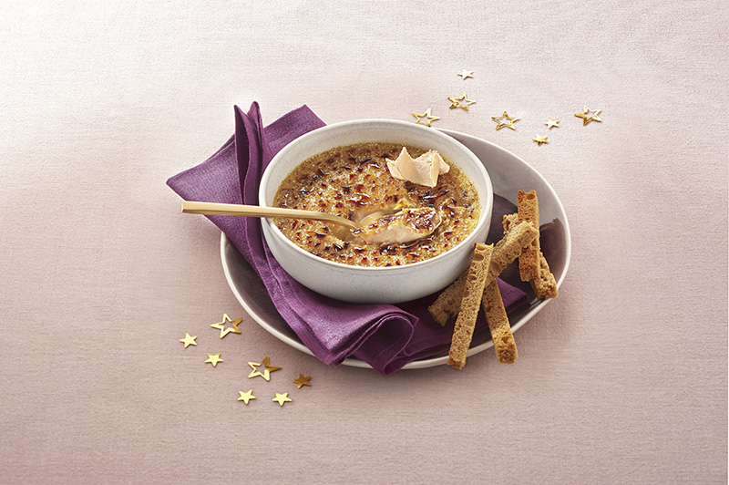 ⑥• Saupoudrer les crèmes de cassonade et les faire caraméliser sous le grill du four ou au chalumeau.