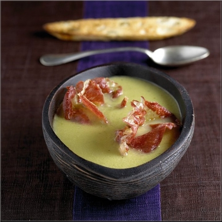 Ajouter les tranches de coppa croustillantes juste avant de servir.