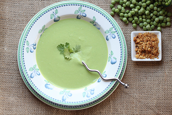 Servir bien chaud accompagné du crumble de Comté, et de quelques feuilles de coriandre ou de cerfeuil ciselées.