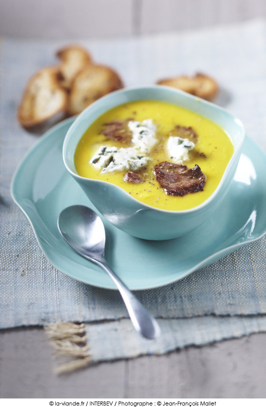 Crème de potiron au bœuf et au Roquefort