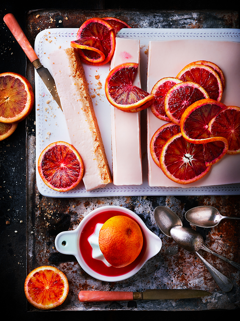 Astuce : au moment de servir, découpez des oranges sanguines en fines rondelles pour décorer les parts de crémeux. L’orange sanguine est très saisonnière, on n’en trouve qu’en janvier et février, donc c’est le moment d’en profiter ! À défaut, vous pouvez réaliser cette recette avec des oranges à jus classiques.