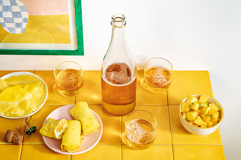 Garnissez chaque crêpe d’un nuage de chantilly et ajoutez des morceaux de mangue fraîche. Roulez délicatement la crêpe ou pliez-la en triangle.