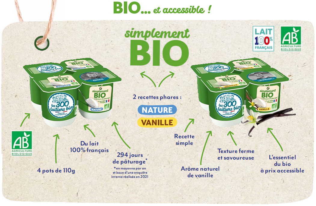 Les 300 Laitiers Bio font de l’emballage un point-clé de leurs réflexions. Après avoir supprimé dès que possible en juillet 2021 les cartonnettes, la marque va encore plus loin en 2022.